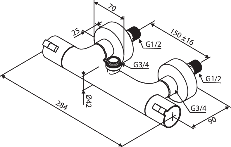 Damixa Thermixa Zero termostatbatteri studs op, Krom