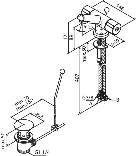 Damixa Titan håndvaskbatteri m/bundventil, krom