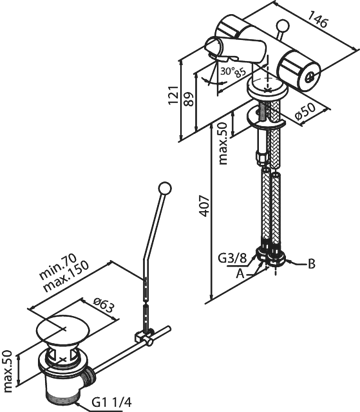 Damixa Titan håndvaskbatteri m/løft op krom.