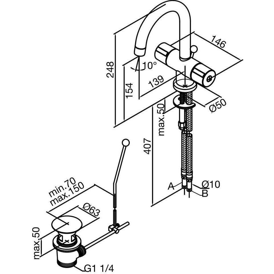 Damixa Titan håndvaskbatteri med bundventil i krom.