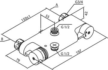 Dette Damixa kar-/brusearmatur har omvendt rørføring - det vil sige at den varme vand går ind i højre side af batteriet.