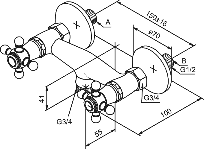 Damixa Tradition køkkenarmatur til vægmontering i krom - Tud skal bestilles seperat.