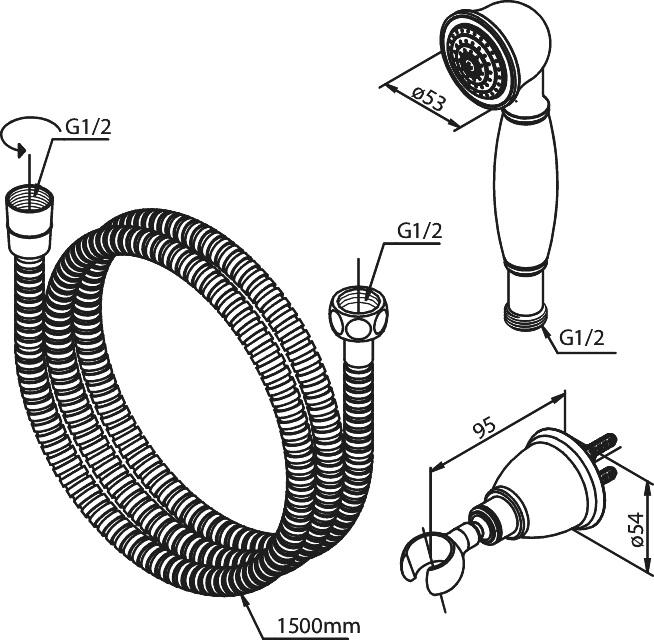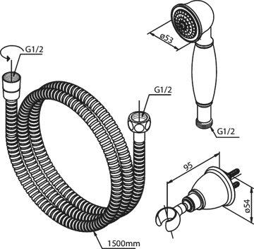 Damixa Tradition håndbrusersæt i krom. Består af: Håndbruser, holder og slange