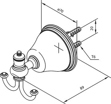 Damixa Tradition håndklædekrog dobbelt i Messing