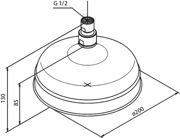 Damixa brusehoved Ø200 mm til brusearm med Rub Clean og kugleled.