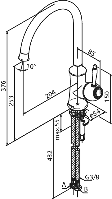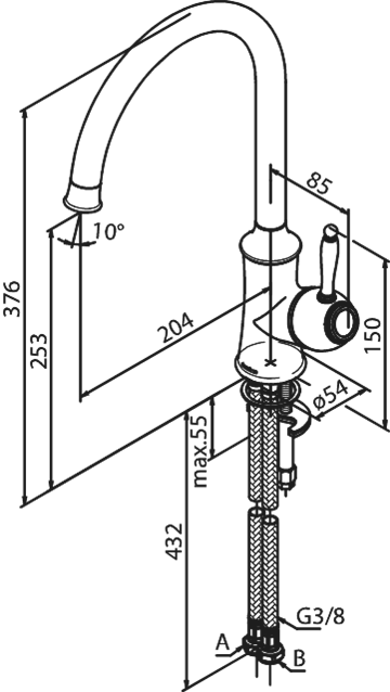 Damixa Tradition Køkkenarmatur med høj tud i krom