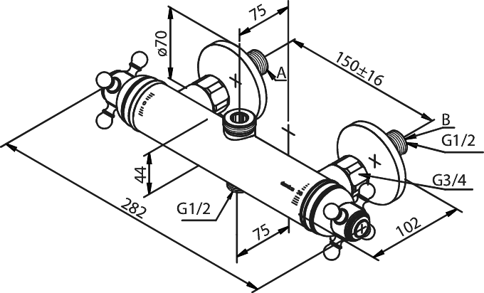 Damixa Tradition Termostatarmatur kar/brus, krom