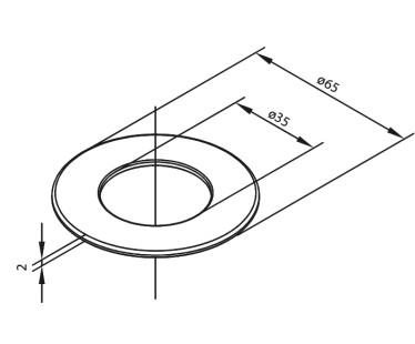 Plade bruges til at skjule ridser og skader rundt om monteringshullet i vasken. Udvendig diameter 65mm.
