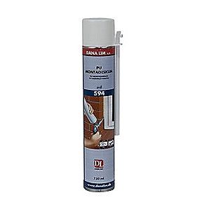 Kan KUN anvendes af håndværkere.PU Montageskum 594 er en 1-komponent polyurethanskum klar til brug. Anvendes ved montering af døre og vinduer, isolering og lyddæmpning, udfyldning af mindre huller og hulrum.PU Montageskum 594 binder og isolerer fortræffeligt. Hæfter på de fleste byggematerialer (dog ikke polyethylen, teflon, silicone og lign. limafvisende flader). Vær opmærksom på at PU-skum ikke tåler sollys (UV-lys), og derfor altid skal dækkes / overmales.Indeholder ikke CFC, HFC eller HCFC drivmidler.