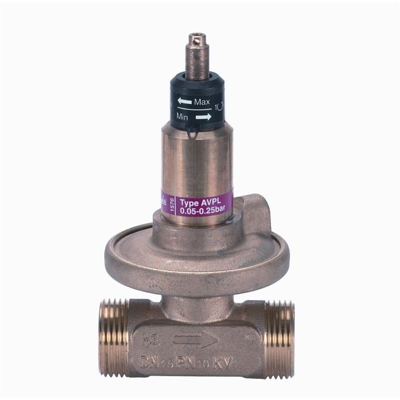 AVPL anvendes til regulering af differenstrykket over radiatoranlæg og lignende anlæg for at opretholde et konstant differenstryk, selv om der er variabel modstand i anlægget, kvs og/eller indgangstryk dP0. AVPL kan indstilles til et vilkårligt differenstryk mellem 5 kPa og 25 kPa (0,05 bar og 0,25 bar). Den forindstillede værdi fra fabrikken er 5 kPa (0,05 bar). AVPL har udvendigt gevind. Gevindnipler med udvendigt gevind samt svejsenipler kan leveres som tilbehør. Impulsledning med nippel og O-ringspakning samt nippelmuffe G 1/16 - R 3/8 til trykudtag leveres sammen med produktet.