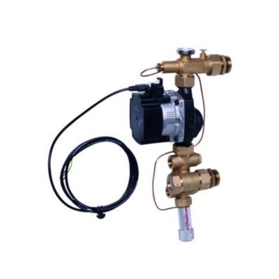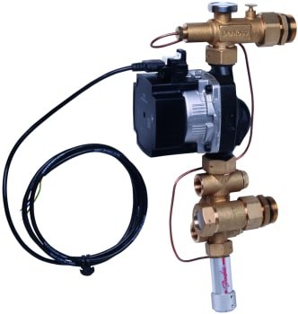 Præfabrikeret shunt til regulering af vandbårne gulvvarmeanlæg. Pumpeshunten monteres nemt direkte på manifolden. kan monteres til højre eller venstre på manifolden.