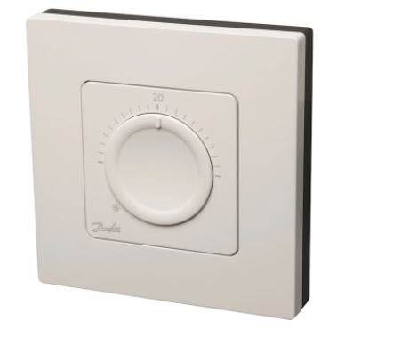 Danfoss Icon rumtermostat, trådløs, drejeknap. Drejeknap termostaten er en kosteffektiv rumtermostat med en enkel betjening og med alle de avancerede funktioner fra Danfoss Icon gulvvarmesystemet tilbyder. Trådløs, 3 års batterilevetid, mulighed for begrænsning af temperatur indstillingsområdet, 2 stk. AA batterier.