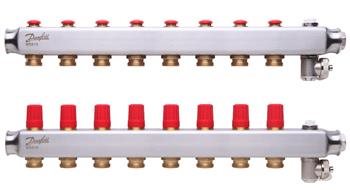 Returmanifolden er udstyret med Danfoss’ forindstillingsventiler, hvilket sikrer optimal vandbalance i systemet. Manifoldventilerne kan styres elektronisk vha. termoaktuatorer. Manifolden findes i moduler fra 2-12 varmekredse. Derudover findes der samlestykker, der gør det muligt at kombinere manifoldene i serier – dog op til max 16 varmekredse. Kugleventiler tilbydes som en mulighed for afspærring mellem manifolden og resten af systemet.