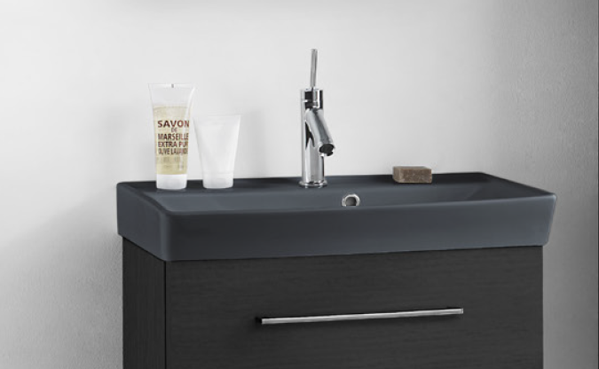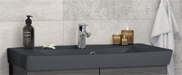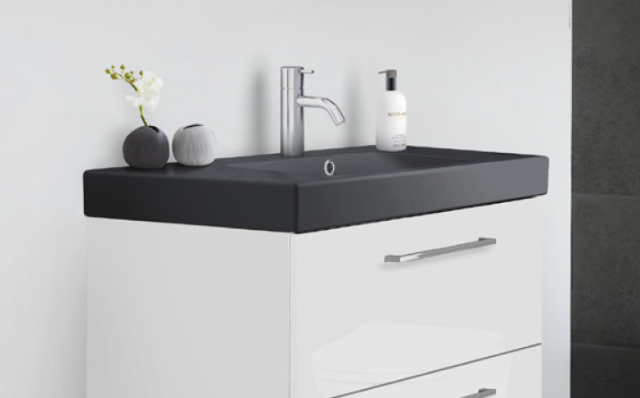 Vasken kan væghænges eller monteres på Mido+ vaskeskabe.