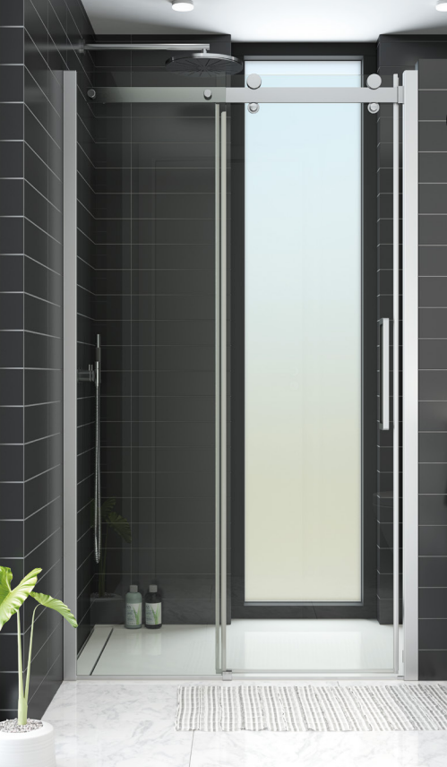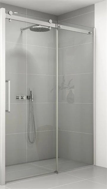Denne skydedør bruseløsning har 8 mm hærdet sikkerhedsglas, som indvendigt har fået en Easy Carebehandling for nem rengøring og vedligeholdelse.