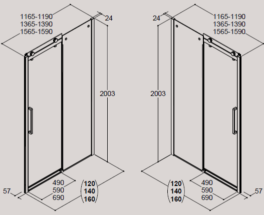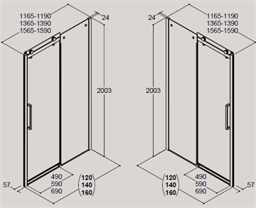 Dansani Deluxe skydedør med 8 mm klart glas, vendbar - 160 cm - Min/max mål: 156,5 - 159 cm