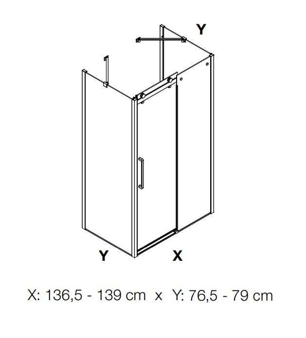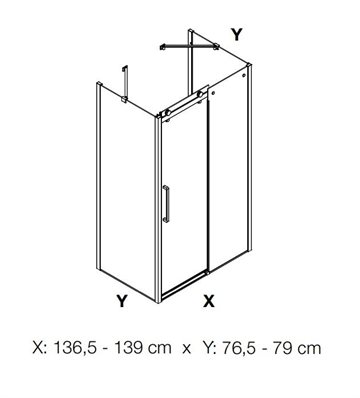 Dansani Deluxe skydedør med 8 mm klart glas og 2 faste sidevægge, vendbar, 140x80 cm  - højden er 2003 mm