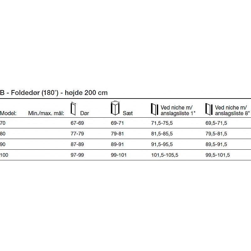 Dansani Match brusehjørne m/foldedøre i klart glas, 79-81 cm er en del af Dansani Match Serien, der består af en bred serie af bruseløsninger som leveres i mange størrelser, der i kombination med hinanden kan sammensættes til fx hjørneløsninger enten med to svingdøre eller med foldedøre eller med sidepaneler samt svingdøre.