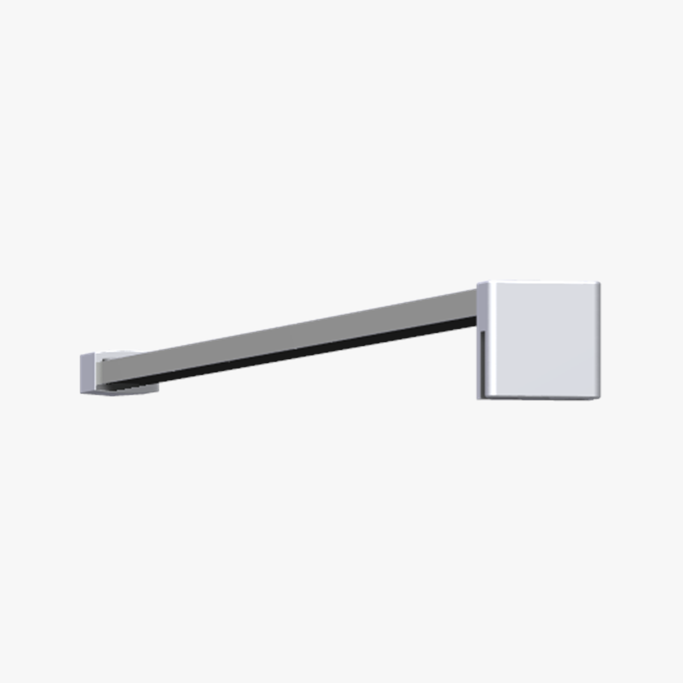 Fremstillet i stærk aluminiumslegering i slidstærk, satin-anodiseret overflade med beslag i forkromet zinkaluminium. Denne stang er fleksibel, da den kan afkortes efter behov.