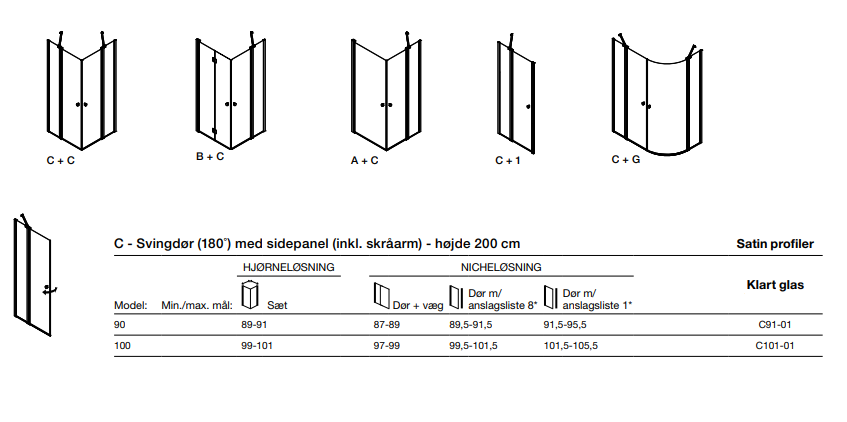 Dansani Match svingdør med sidepanel 87-89 cm er en del af Dansani Match Serien, der består af en bred serie af bruseløsninger som leveres i mange størrelser, der i kombination med hinanden kan sammensættes til fx hjørneløsninger enten med to svingdøre eller med foldedøre eller med sidepaneler samt svingdøre.