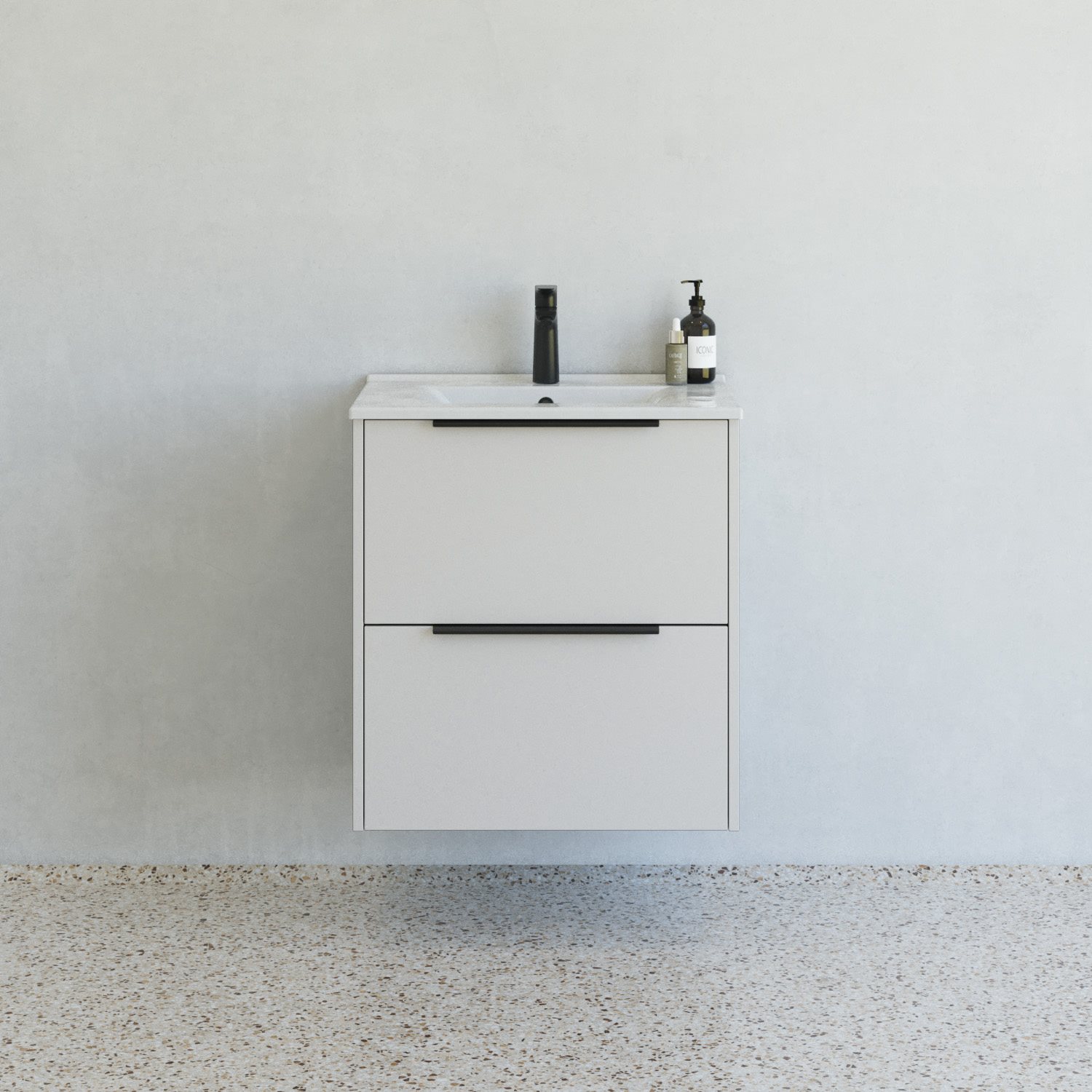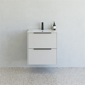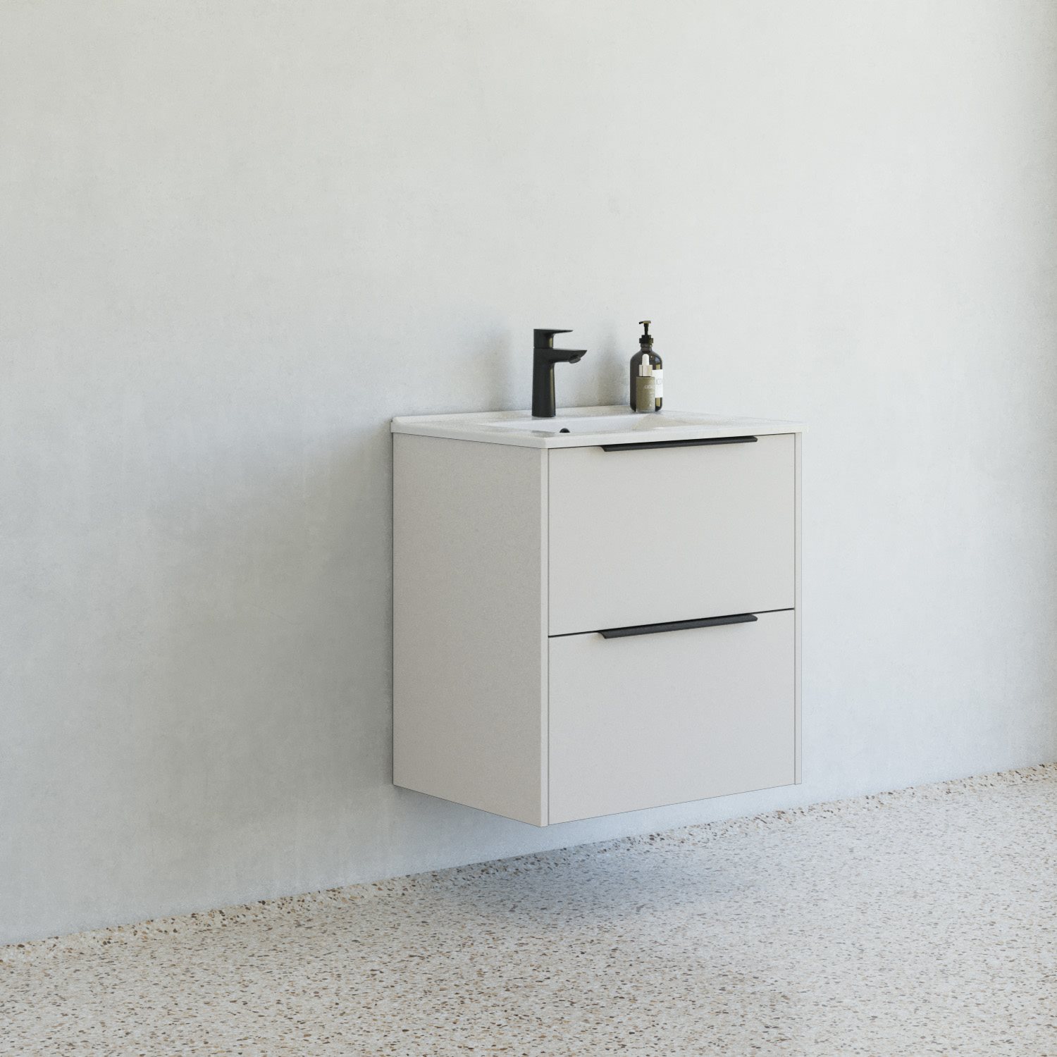 Dansani Mido+ Classic møbelpakke 61cm med Amber håndvask og 2 soft close skuffer og sorte greb, Sand mat - art.nr. MCMA-0734