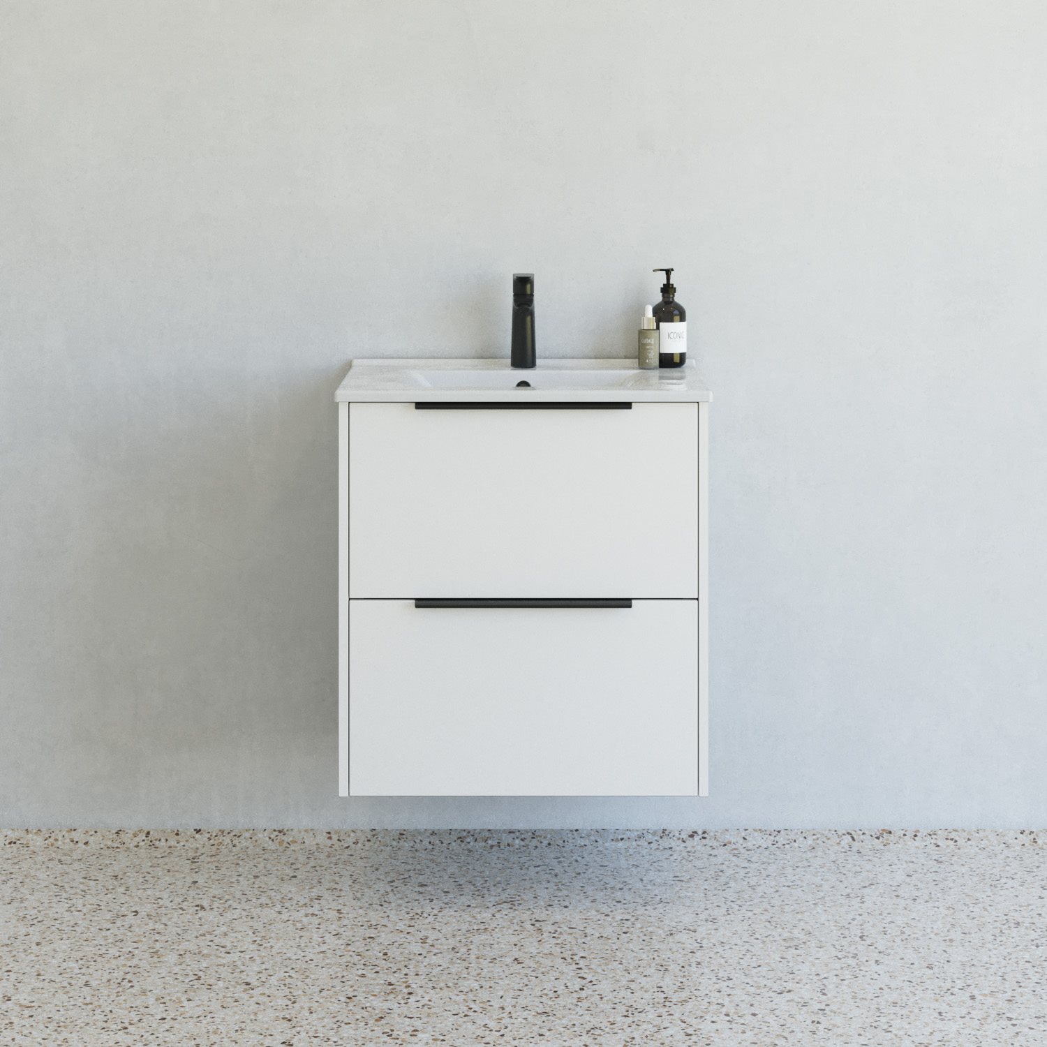 Dansani Mido+ Classic møbelpakke 61cm med Amber håndvask og 2 soft close skuffer og sorte greb, Hvid mat - art.nr. MCMA-0710