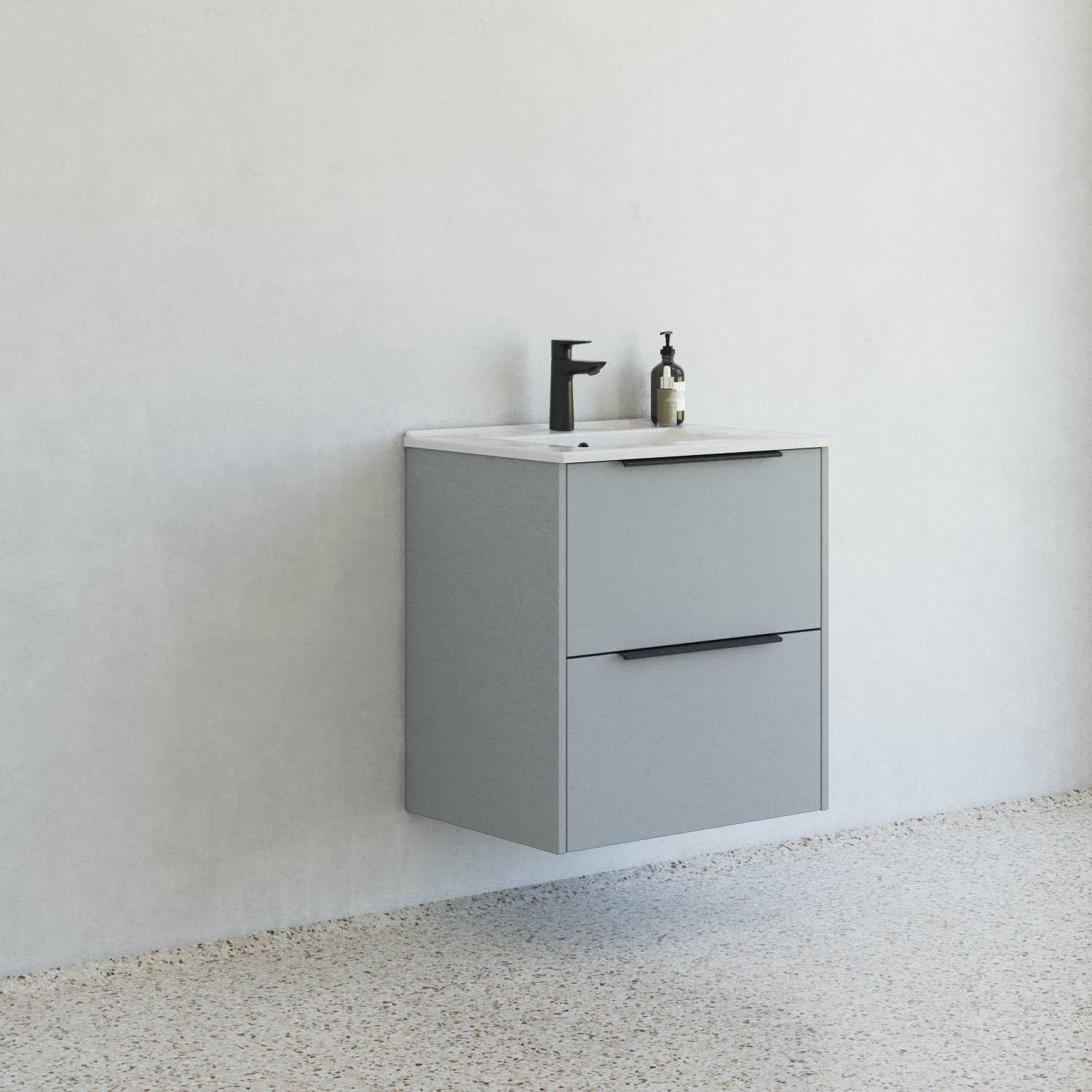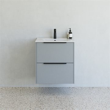 Dansani Mido+ Classic møbelsæt 61cm m/Amber vask og 2 skuffer, Mat lyseblå + GRATIS INDRETNINGSBAKKE