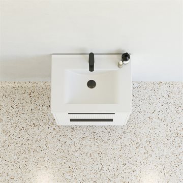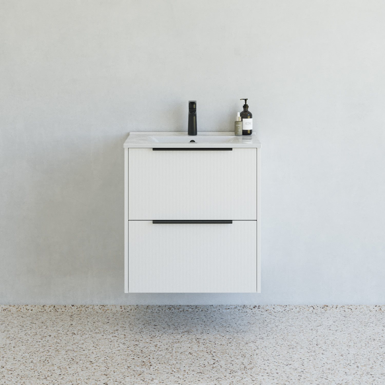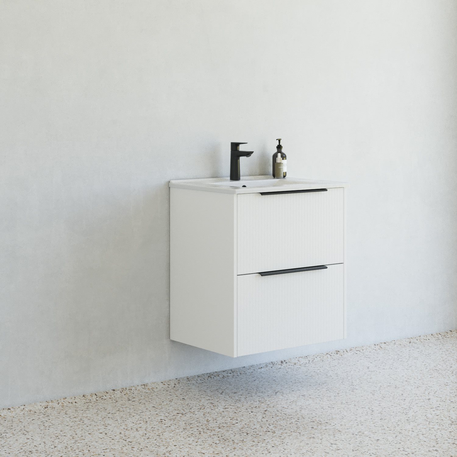 Dansani Mido+ Classic møbelpakke 61cm med Amber håndvask og 2 soft close skuffer og sorte greb, Stribet mat hvid - art.nr. MCMA-1710