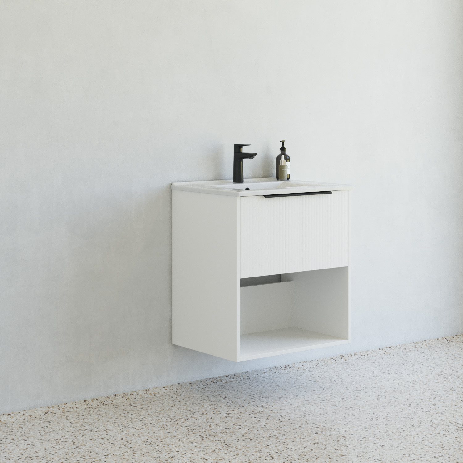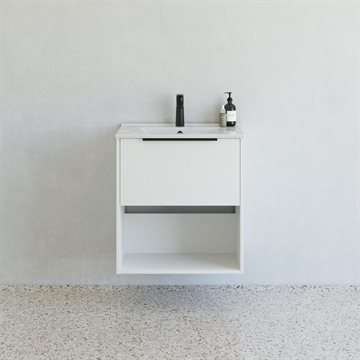 Dansani Mido+ Classic møbelpakke 61cm med stor skuffe med soft close og sort greb og hylde, Stribet mat hvid - art.nr. MCMA-1410