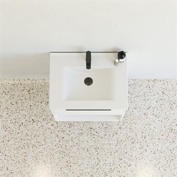 Stribet mat hvid er en blød og elegant nuance, der giver et rent og tidløst udseende til et badeværelsesmøbel. Den matte finish tilføjer en subtil luksuriøsitet og skaber en beroligende atmosfære i rummet.