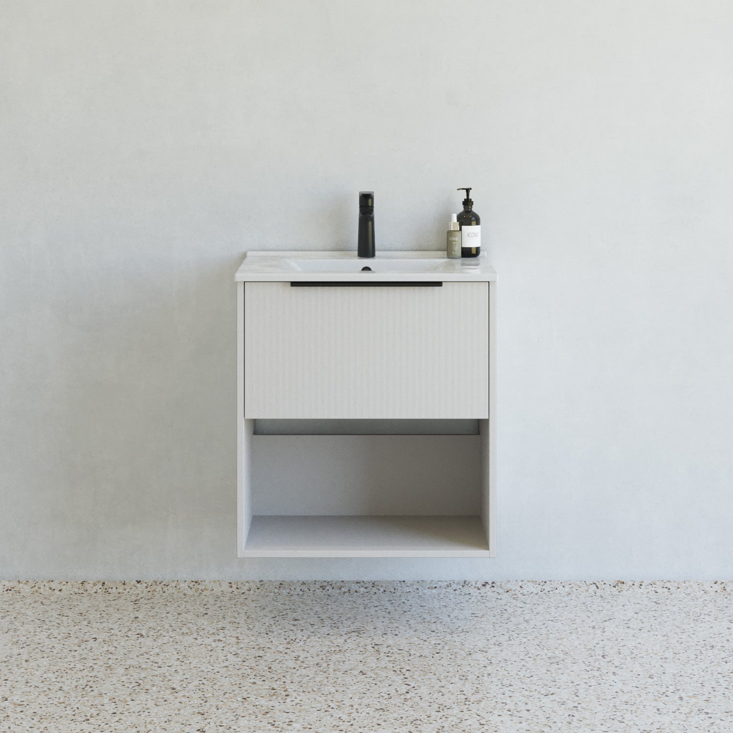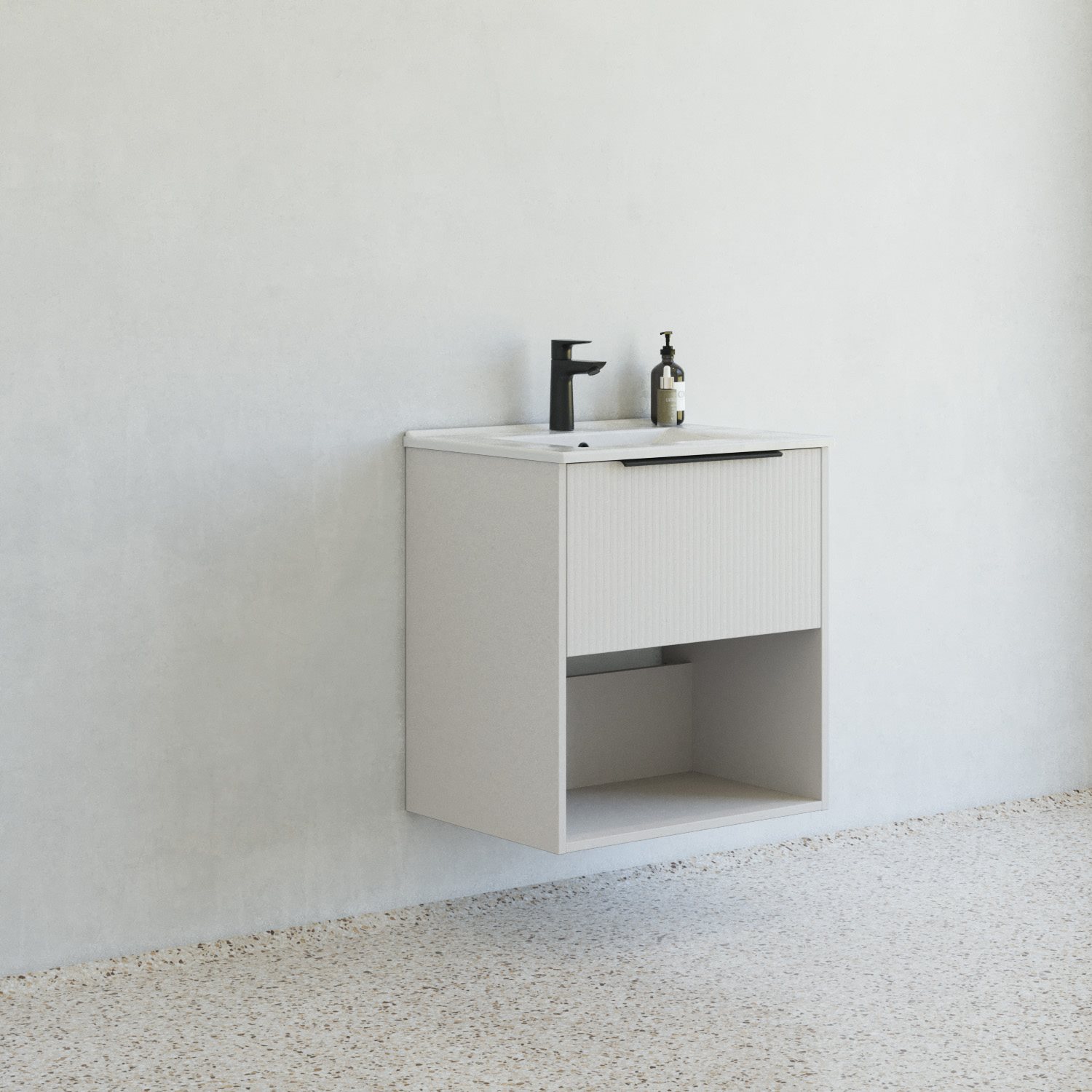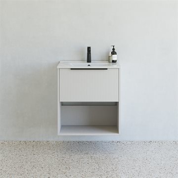 Dansani Mido+ Classic møbelpakke 61cm med stor skuffe med soft close og sort greb og hylde, Stribet mat sand - art.nr. MCMA-1410