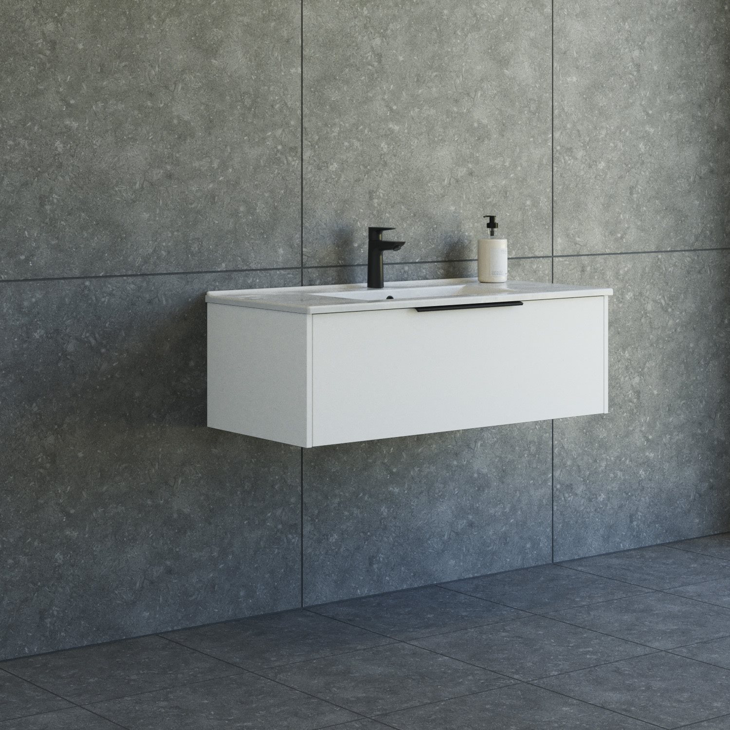 Dansani Mido+ Classic møbelpakke 101cm m/Amber vask og 1 skuffe, Mat hvid + GRATIS INDRETNINGSBAKKE