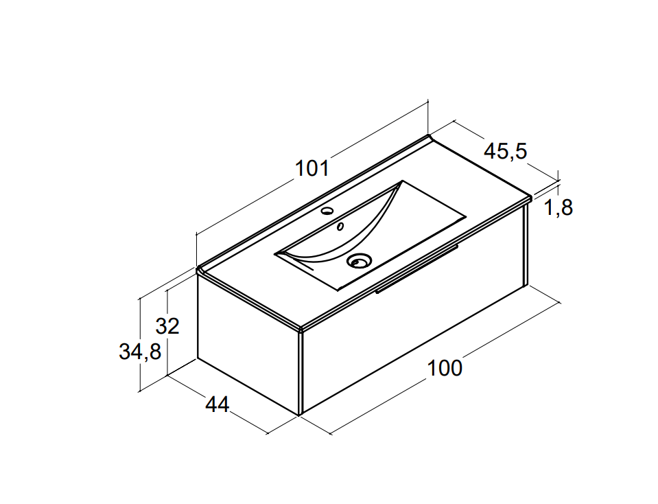 Dansani Mido+ Classic komplet møbelsæt 101cm med Amber håndvask og med stor skuffe med sort greb
