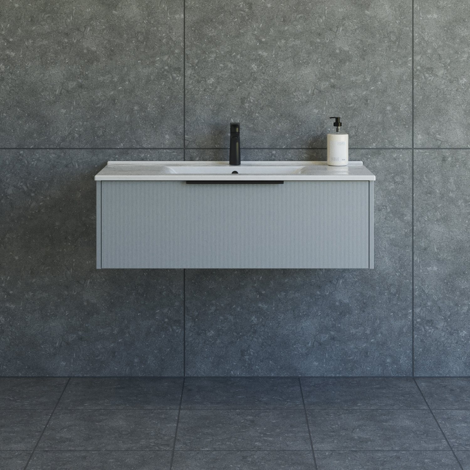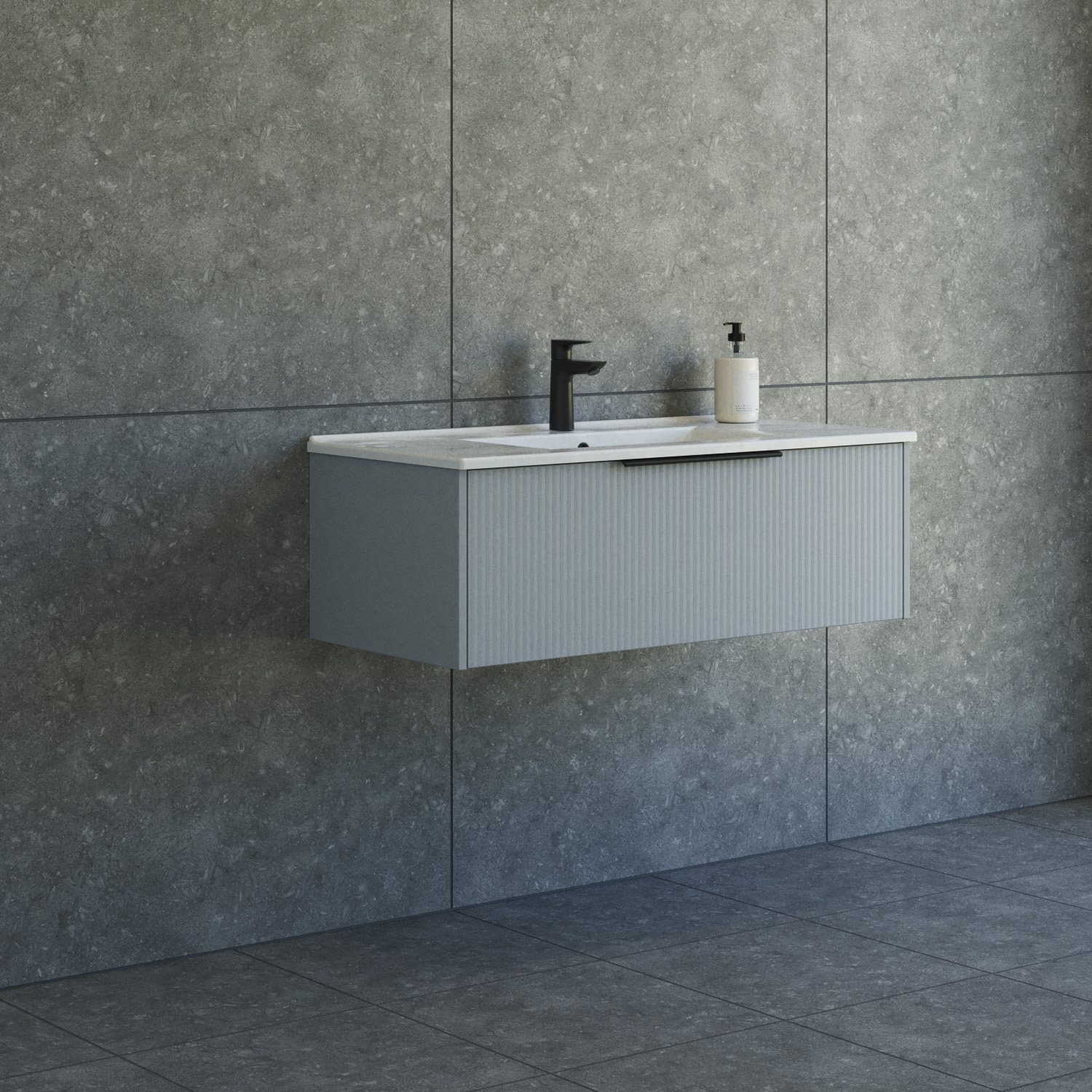 Dansani Mido+ Classic møbelpakke 101cm m/Amber vask og 1 skuffe, Stribet mat lyseblåt + GRATIS INDRETNINGSBAKKE