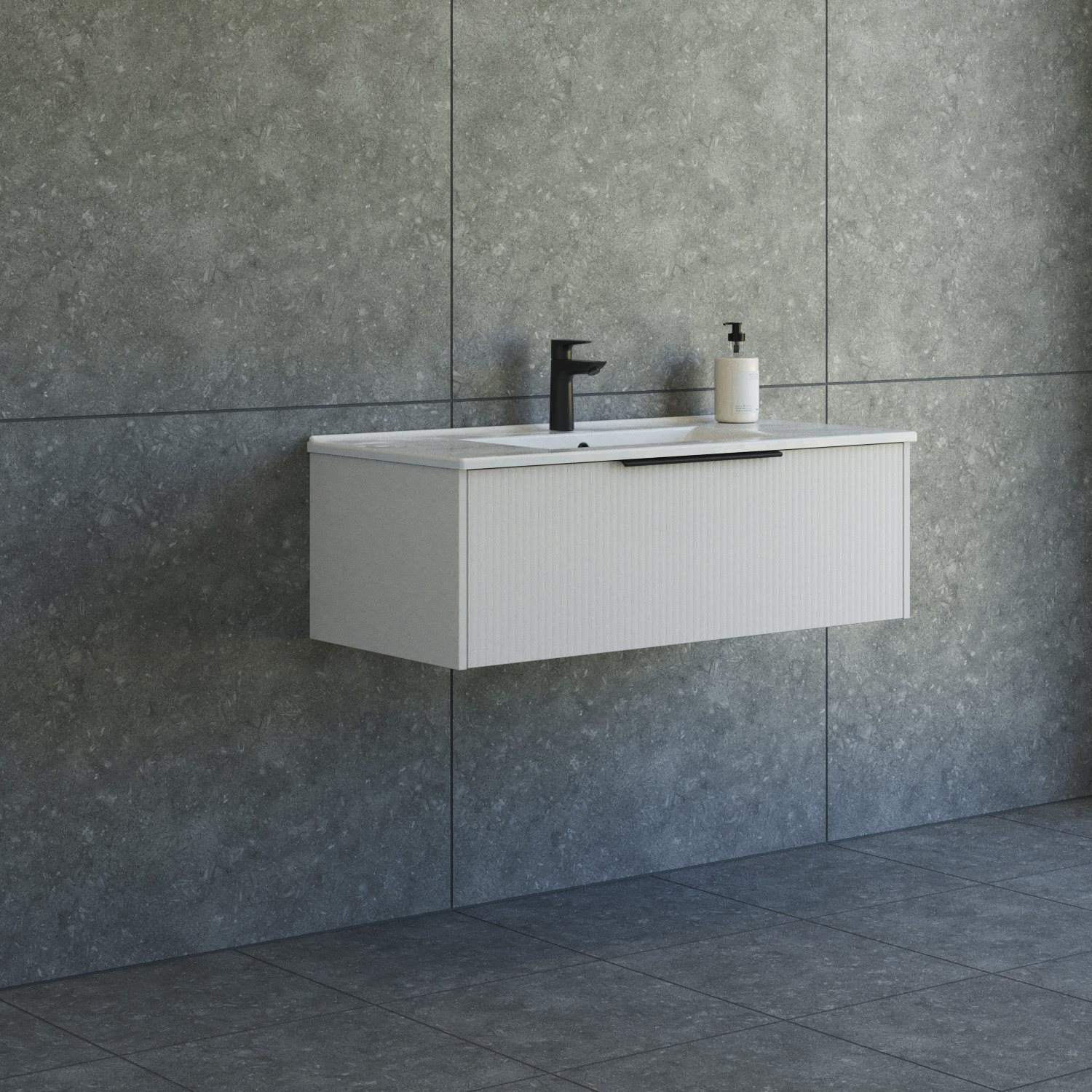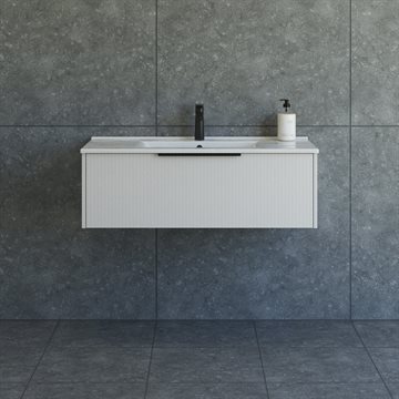 Dansani Mido+ Classic møbelpakke 101cm m/Amber vask og 1 skuffe, Stribet mat sand + GRATIS INDRETNINGSBAKKE