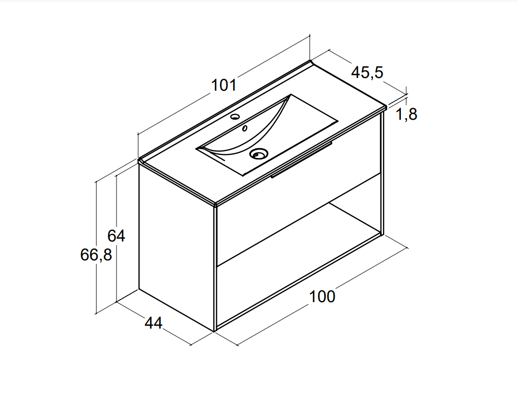 Dansani Mido+ Classic møbelpakke 101cm med stor skuffe med soft close og sort greb og hylde