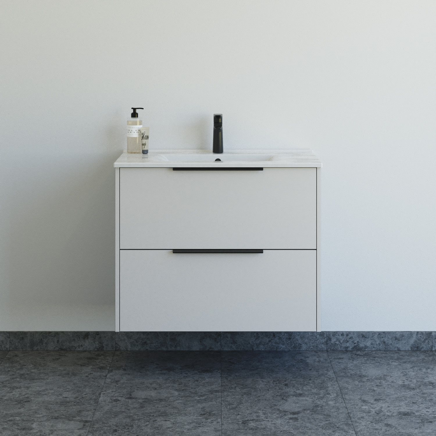 Dansani Mido+ Classic møbelpakke 81cm med Amber håndvask og 2 soft close skuffer og sorte greb