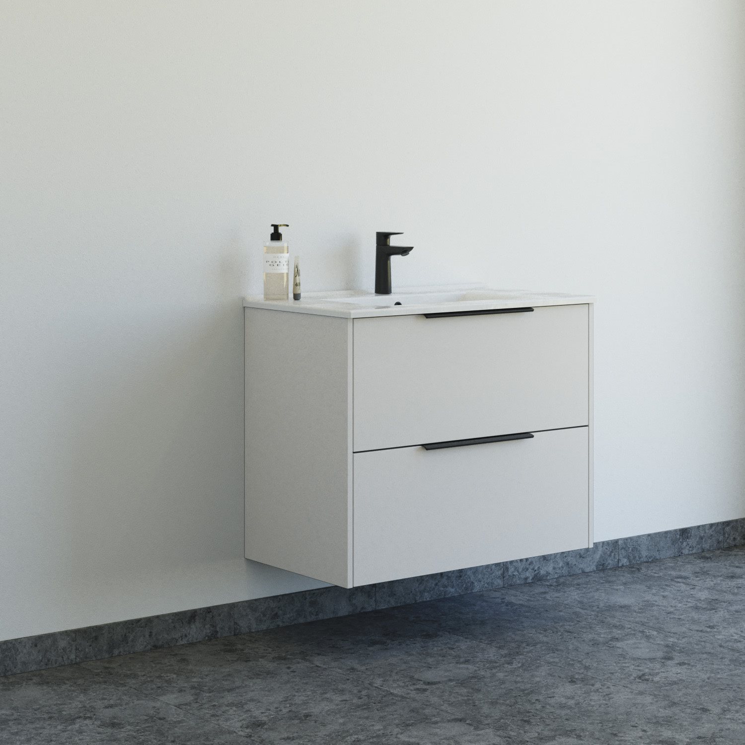 Dansani Mido+ Classic møbelsæt 81cm m/Amber vask og 2 skuffer, Sand mat + GRATIS INDRETNINGSBAKKE