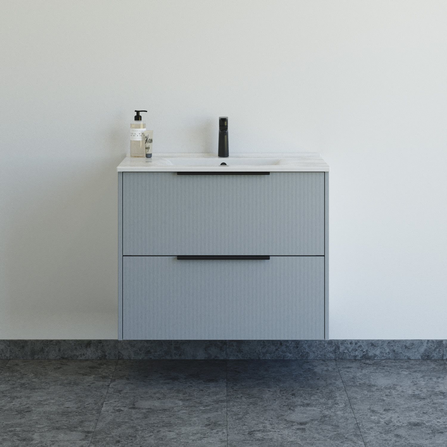 Dansani Mido+ Classic møbelsæt 81cm m/Amber vask og 2 skuffer, Stribet lyseblå mat + GRATIS INDRETNINGSBAKKE