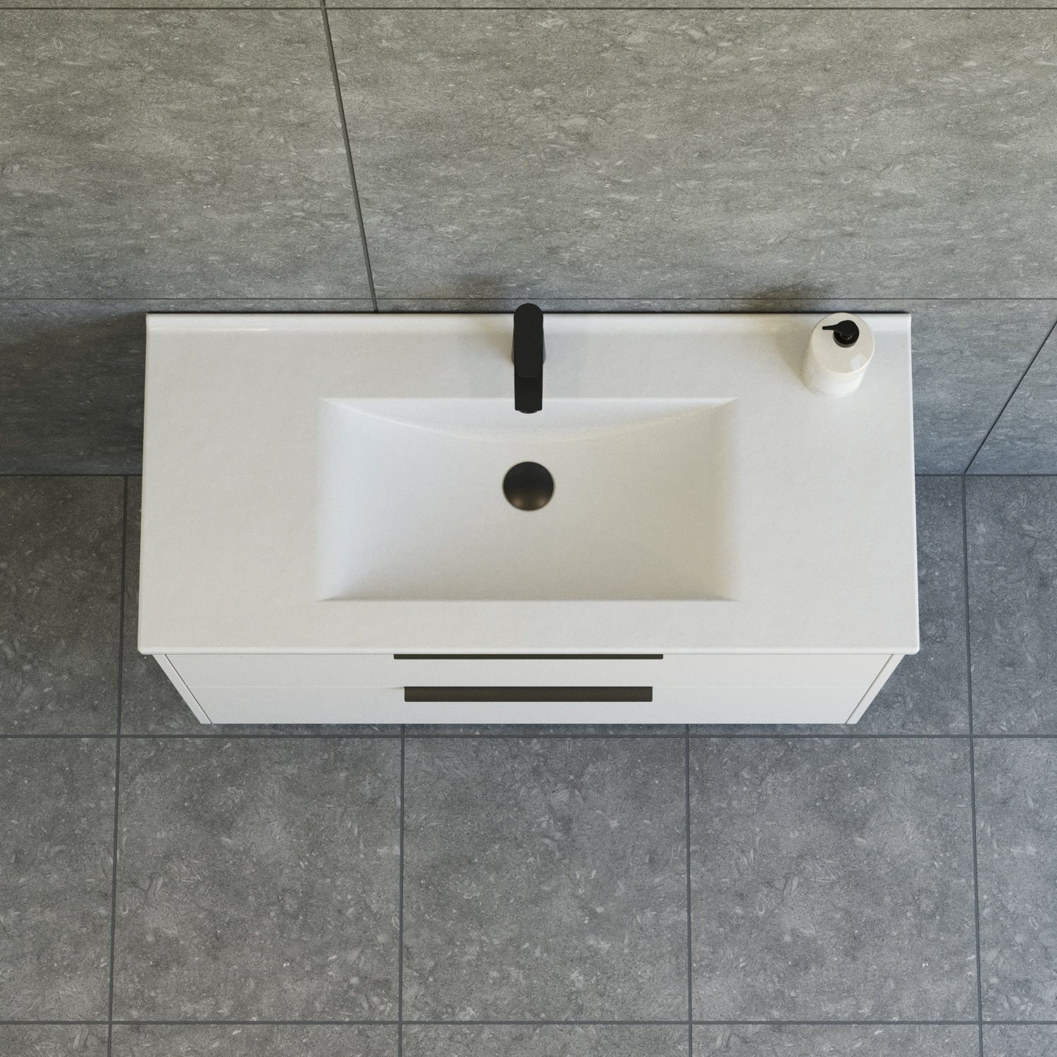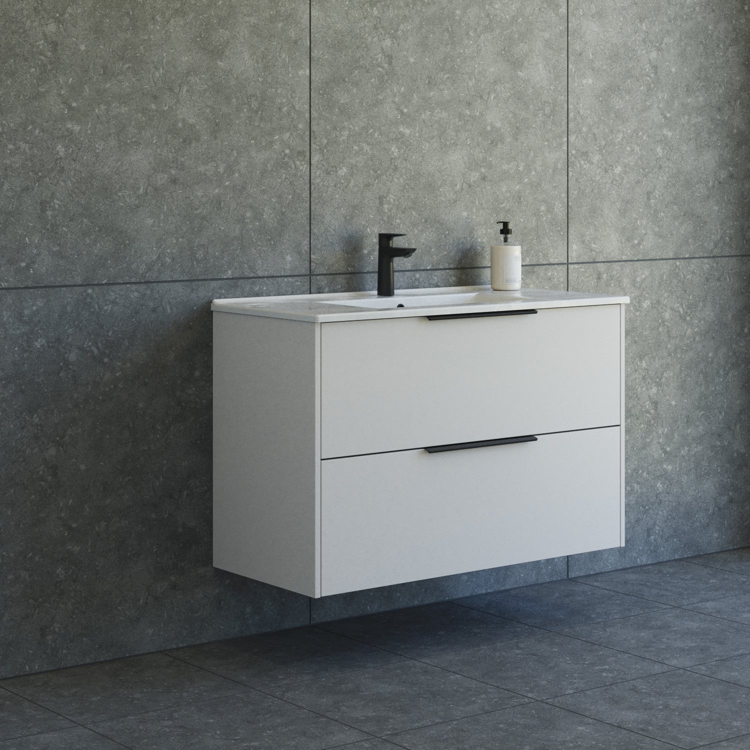 Dansani Mido+ Classic møbelpakke 101cm med Amber håndvask og 2 soft close skuffer og sorte greb
