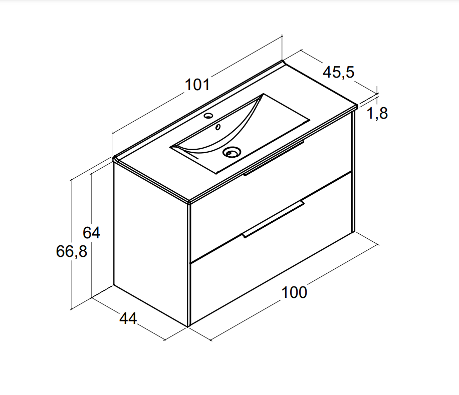 Dansani Mido+ Classic møbelpakke 101cm med Amber håndvask og 2 soft close skuffer og sorte greb