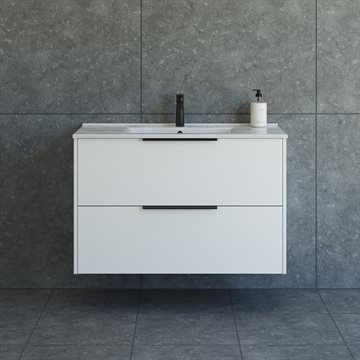 Dansani Mido+ Classic møbelsæt 101cm m/Amber vask og 2 skuffer, Stribet hvid mat + GRATIS INDRETNINGSBAKKE