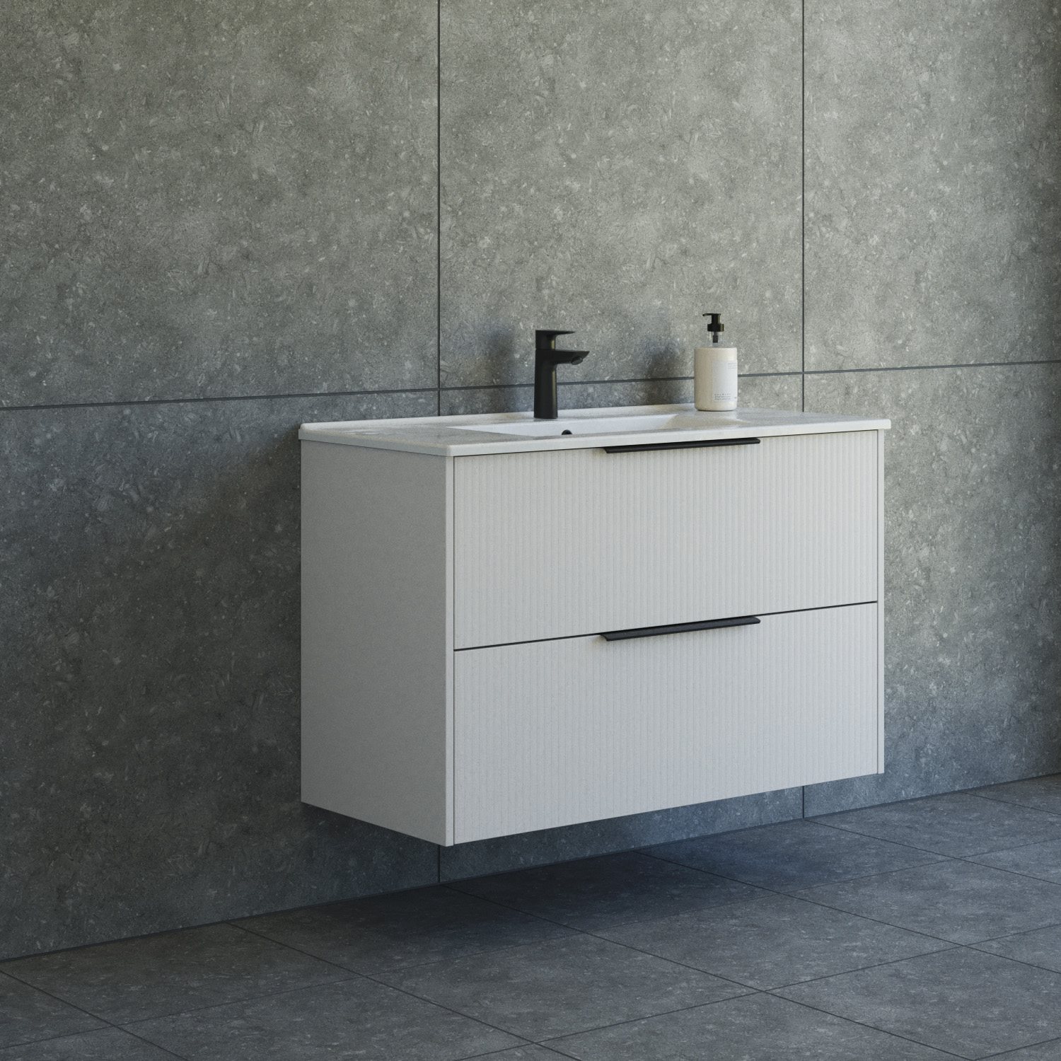 Dansani Mido+ Classic møbelpakke 101cm med Amber håndvask og 2 soft close skuffer og sorte greb