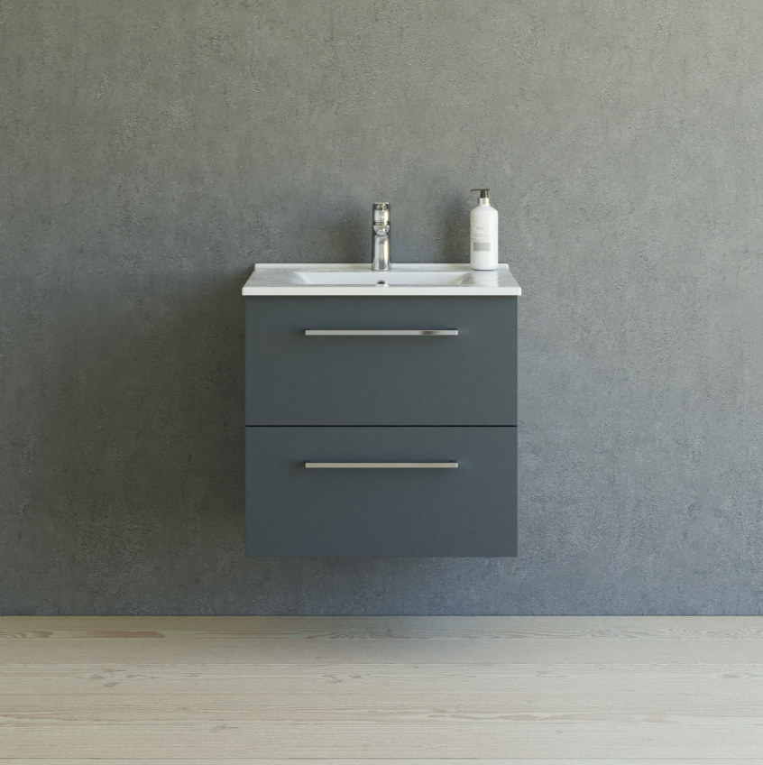 Dansani Mido+ møbelsæt 61cm m/Amber vask og 2 skuffer, Mat grå + GRATIS INDRETNINGSBAKKE