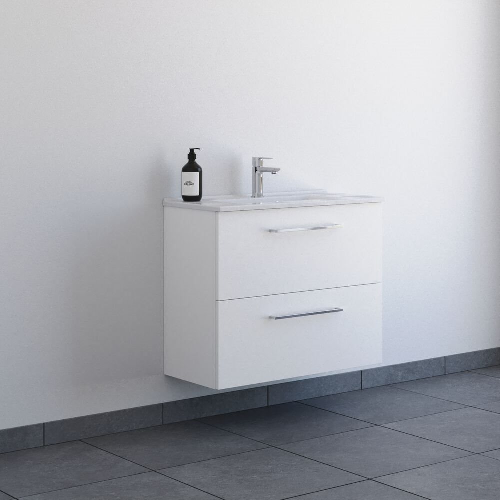 Dansani Mido+ møbelsæt 81cm m/2 skuffer og Amber Mini vask, Hvid mat + GRATIS INDRETNINGSBAKKE