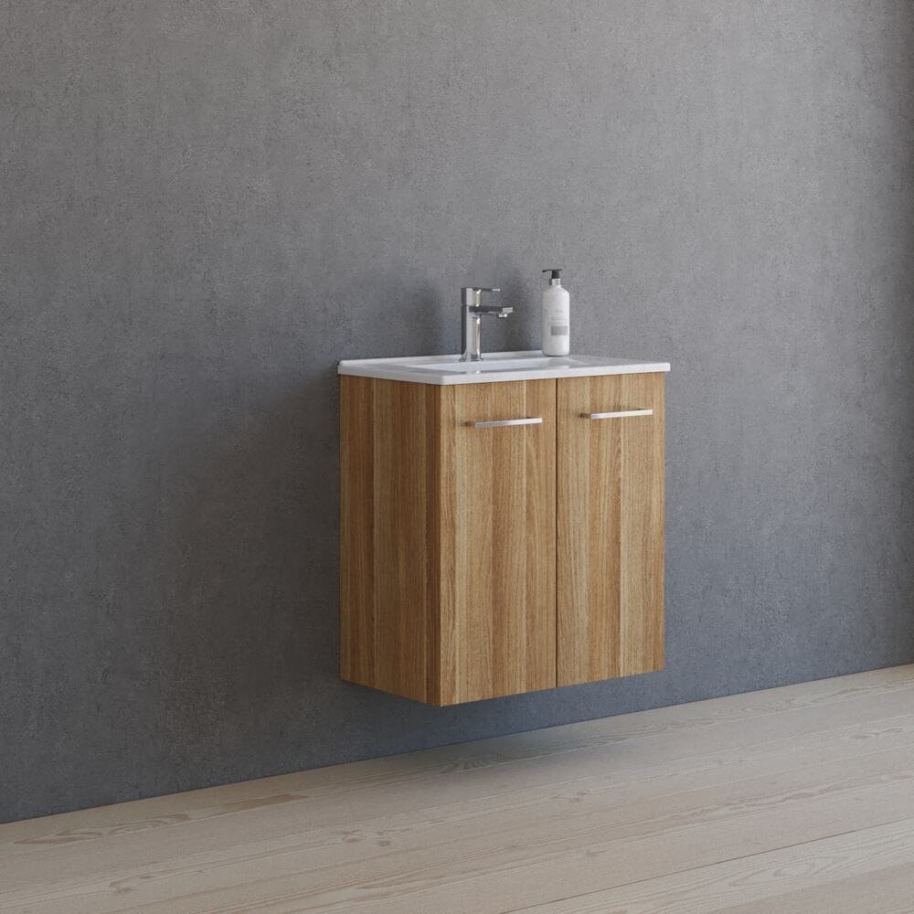 Dansani Mido+ badeværelsesmøbel 61cm med Amber Mini vask og 2 låger og greb, Varm eg - art.nr. SMA-0355
