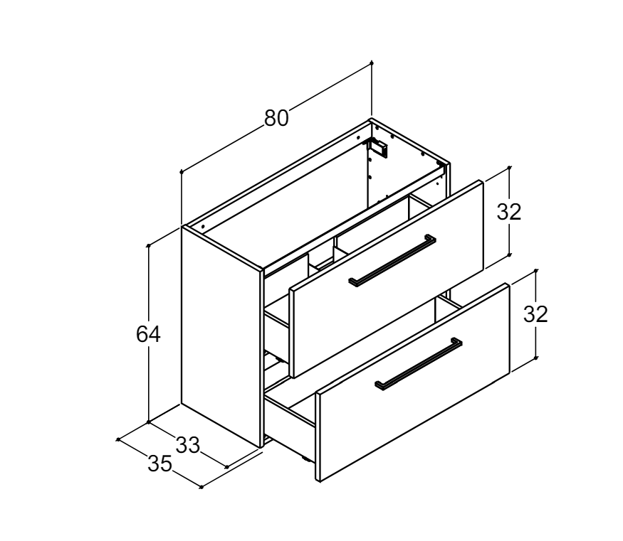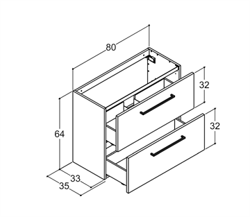 Dansani Mido+ badeværelsesmøbel 81cm med Amber Mini vask og 2 låger og greb, mat hvid - art.nr. SMA-0410