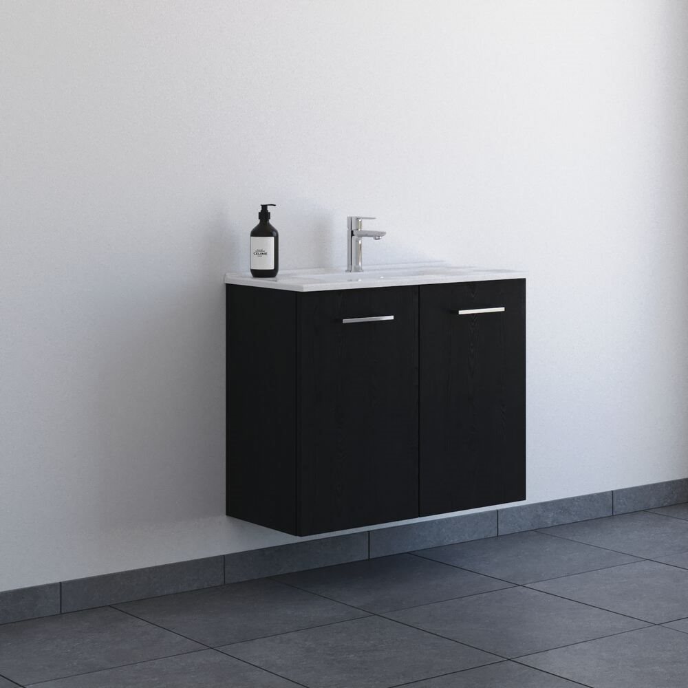 Dansani Mido+ møbelsæt 81cm m/2 låger og Amber Mini vask, Sort eg