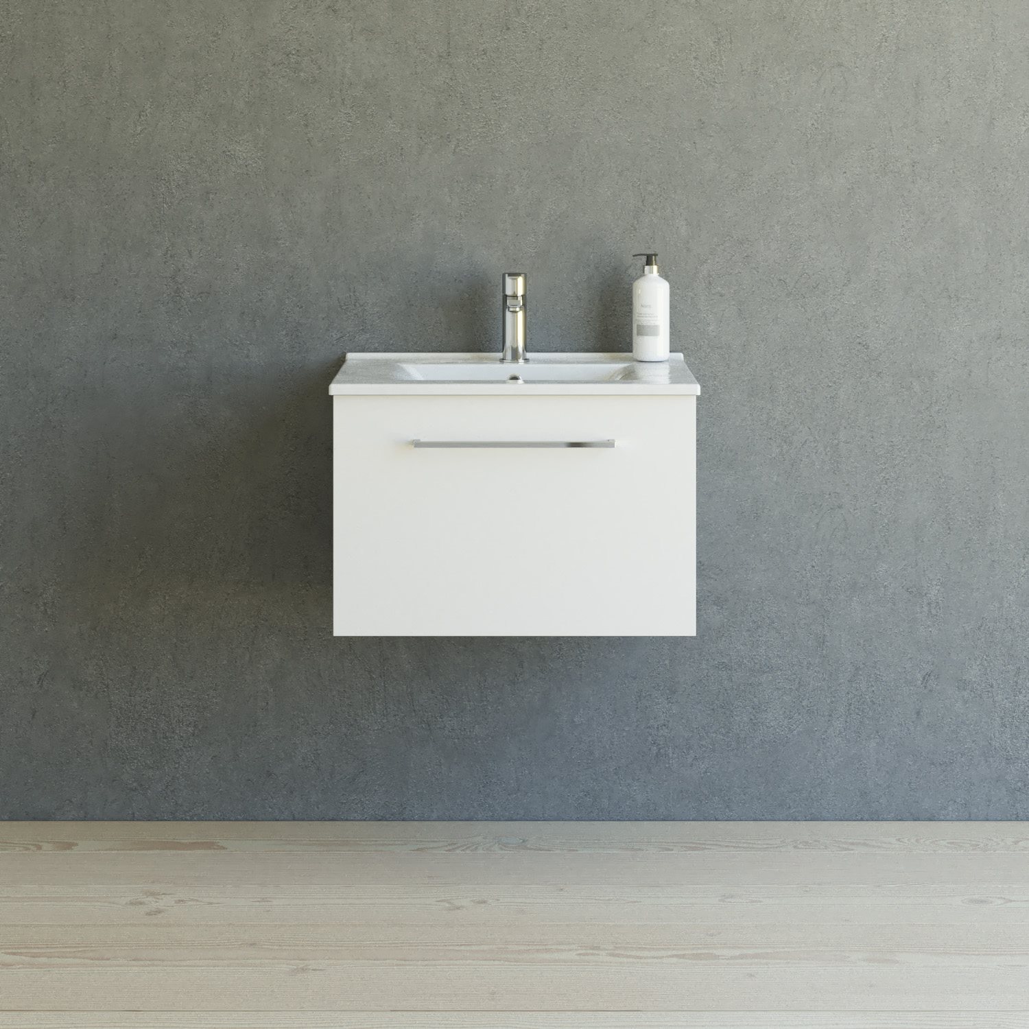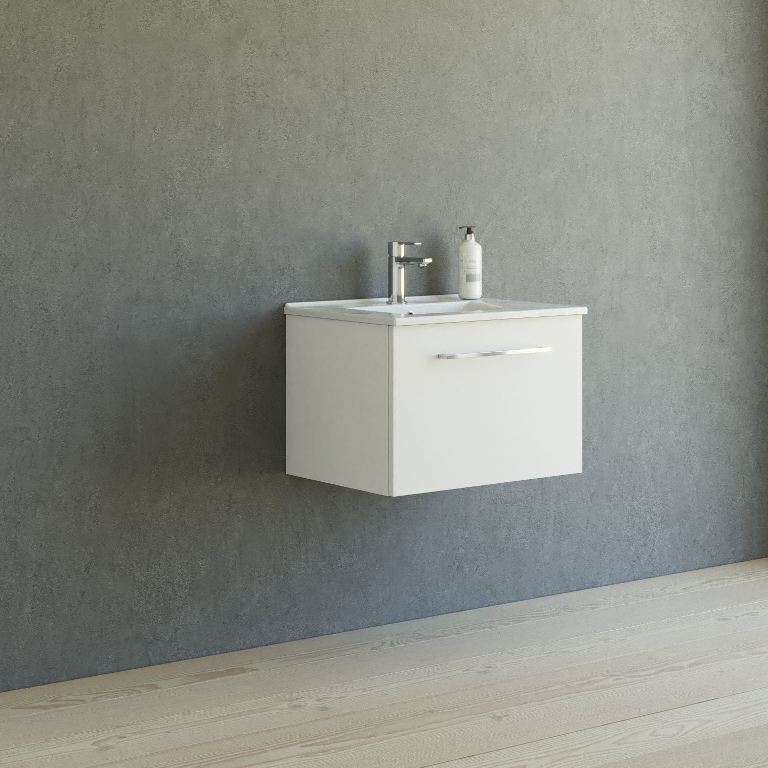Dansani Mido+ møbelpakke 61cm med Amber håndvask og 1 enkel og stor skuffe med soft close og greb, Hvid mat - art.nr. MMA-6010