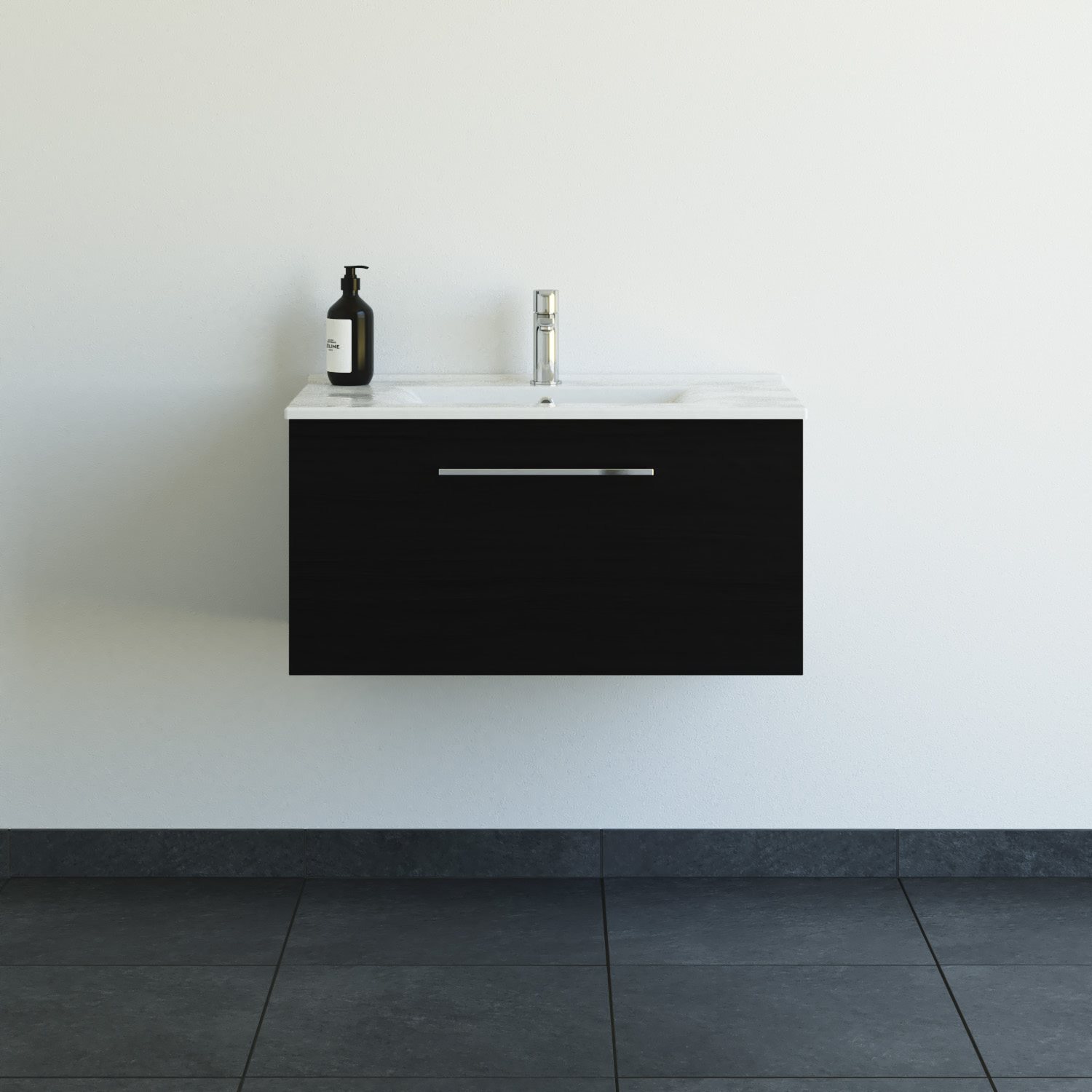 Dansani Mido+ møbelpakke 81cm med Amber håndvask og 1 enkel og stor skuffe med soft close og greb, sort struktur - art.nr. MMA-6129